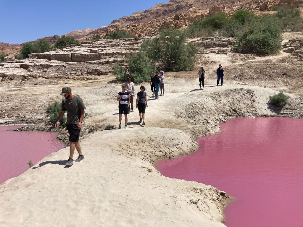 • Visits to various sites in the city of Amman, including refugee camps, the old city, and different factories, as well as other cities and tourist sites such as Aqaba, Petra, Jerash, Madaba, Wadi Rum, the Dead Sea, Umm Qais, and Ajloun Castle